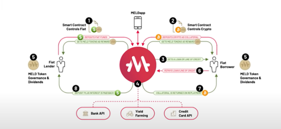 這很複雜,但基本上不像blockfi或celsius這樣的中心化借貸平台,需要你把代幣發給他們持有。Meld應用程序將把代幣放在一個去中心化的基金中,而不是。並用智能合約自動處理一切,這意味著那些不想把自己的加密貨幣交給中心化基金的人可以使用該應用程序。
