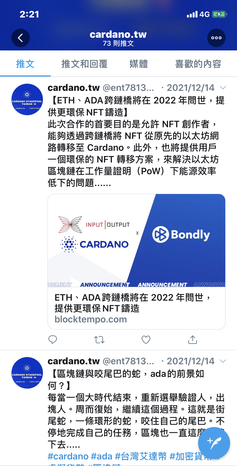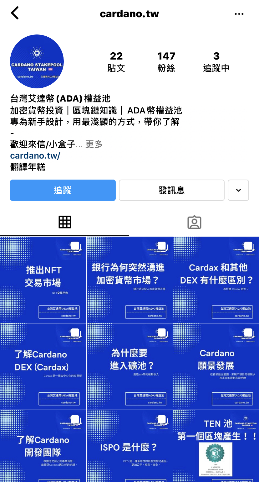 台灣艾達幣(ADA)權益池 - 三大社群平台同步更新