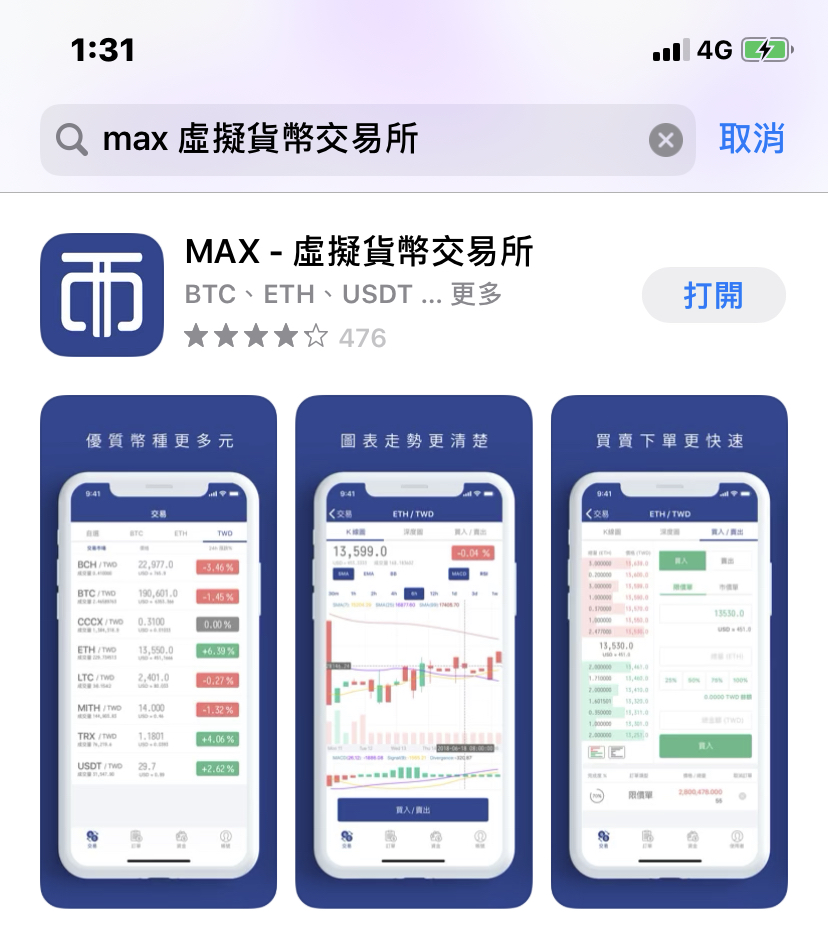 - 手機下載app:搜尋「 MAX虛擬貨幣交易所」,進行下載