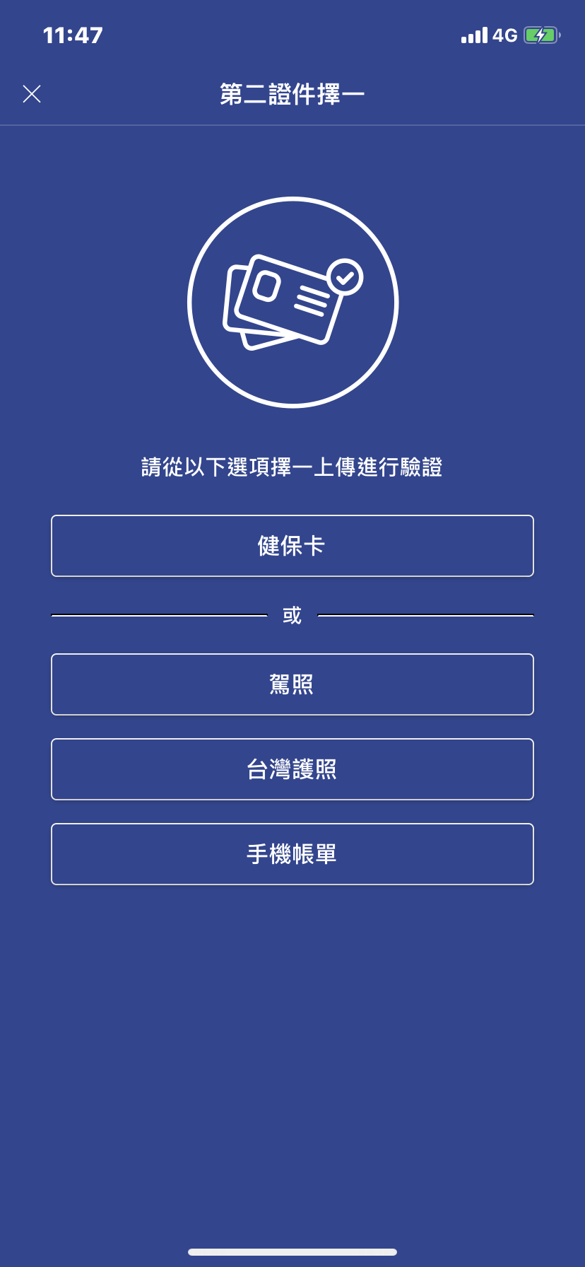 主要可以有4種可以選擇,包含: ● 健保卡 ● 駕照 ● 手機帳單 ● 護照
