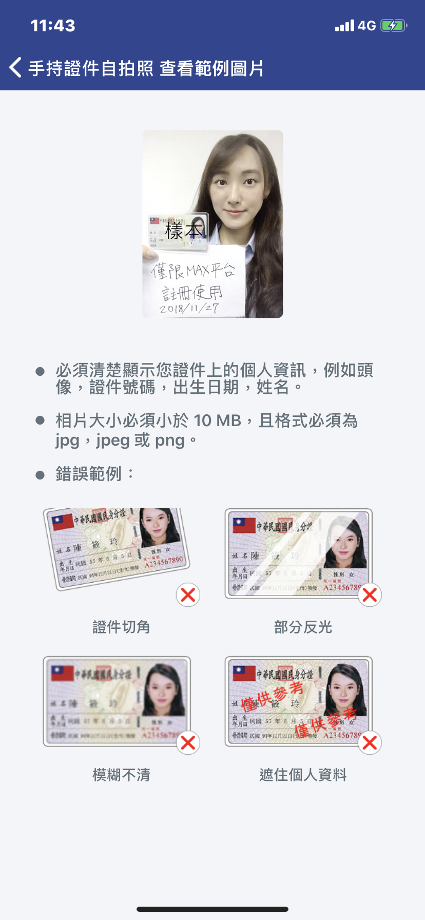 驗證注意:手持證件自拍照驗證